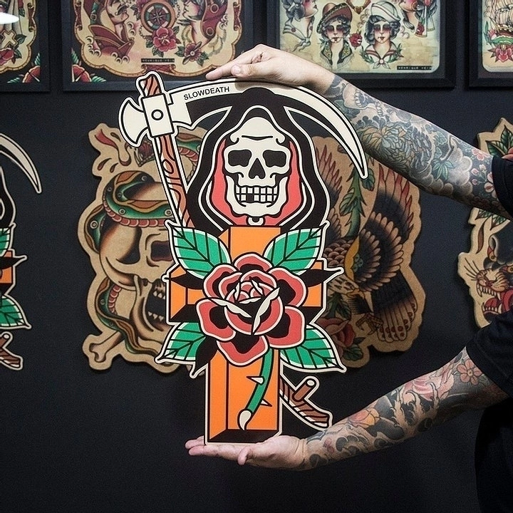 Placa Decorativa Casal Andorinhas Trad Tattoo